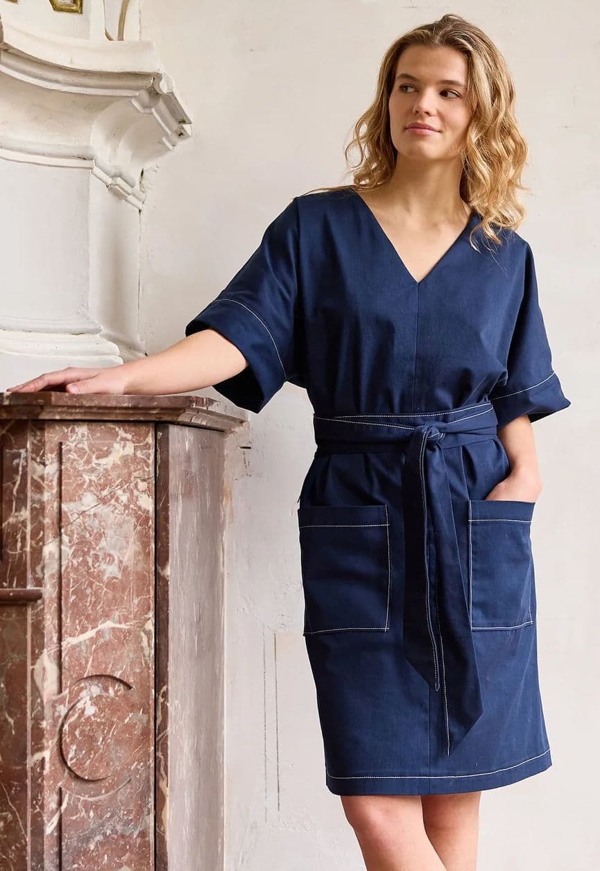 Martha is highly versatile—wear her loose for a relaxed look or cinched with the belt for a more defined silhouette. Choose solid fabrics to highlight the pockets and seam detailing, or have fun with prints and colours for a fresh summer wardrobe piece.