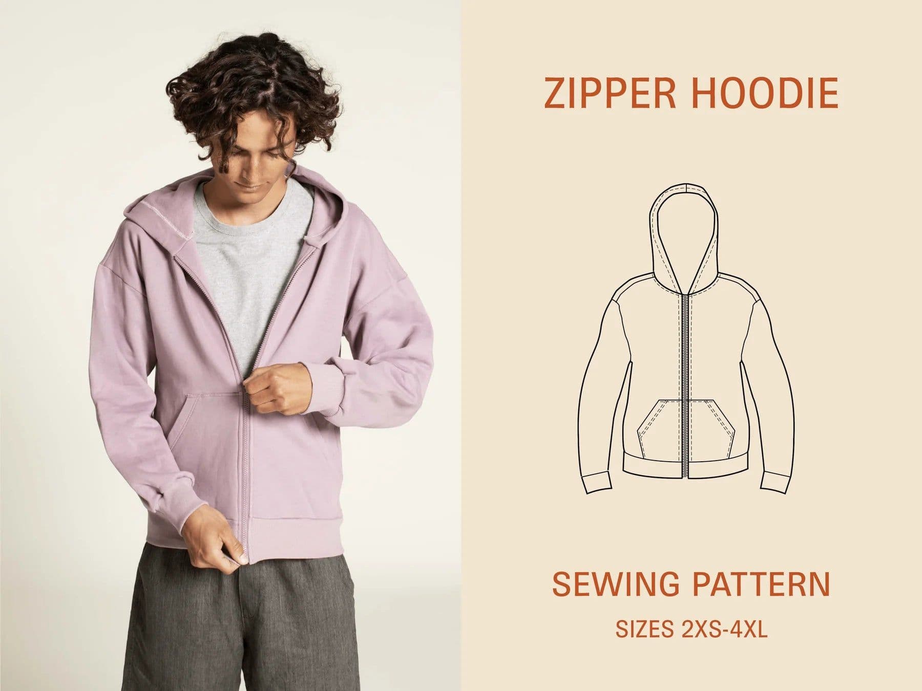 Zipper Hoodie Pattern – Unisex Sizes